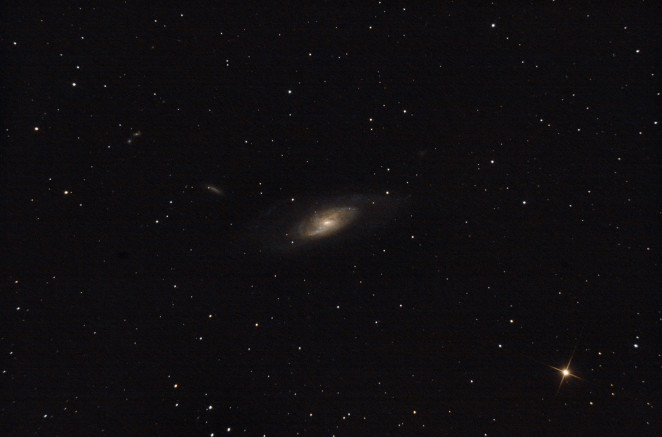 L'une des plus belles galaxies "oubliées" du catalogue Messier, peut-être la plus belle de la constellation. Elle montre déjà sa silhouette au télescope de 200 mm, et on devine une sorte de petite barre au centre, qui est l'amorce du système spiral. Une cible de choix pour les astrophotographes également.