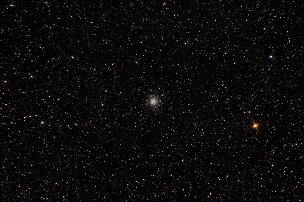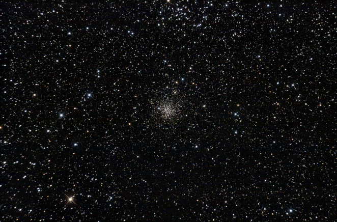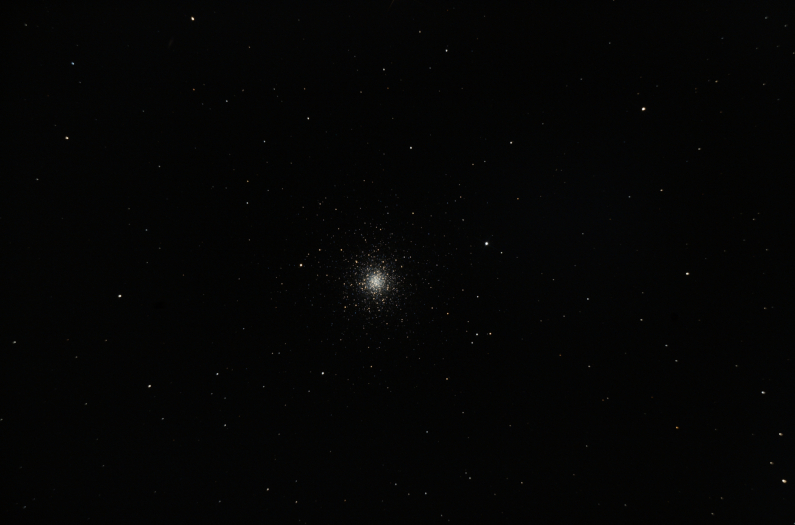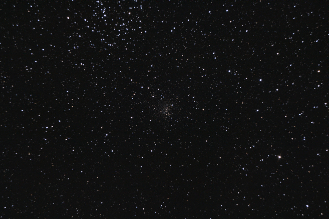 Amas globulaire très peu condensé, l'un des plus brillants et faciles de ce type. Le télescope de 200 mm montre une nébulosité de forme indéfinie, un peu plus brillante au centre, et laisse deviner une dizaine d'étoiles très faibles en vision décalée (à condition de grossir suffisamment).