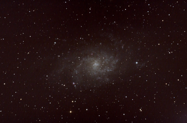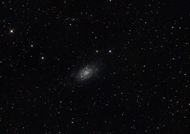 Galaxie pas facile pour une Messier ! Ronde, avec un bulbe petit, un noyau encore plus petit, et un disque très étendu et faible. Sous un bon ciel, elle laisse deviner le sens de son enroulement dans un 200 mm. Les deux bras apparaissent à 300 mm.