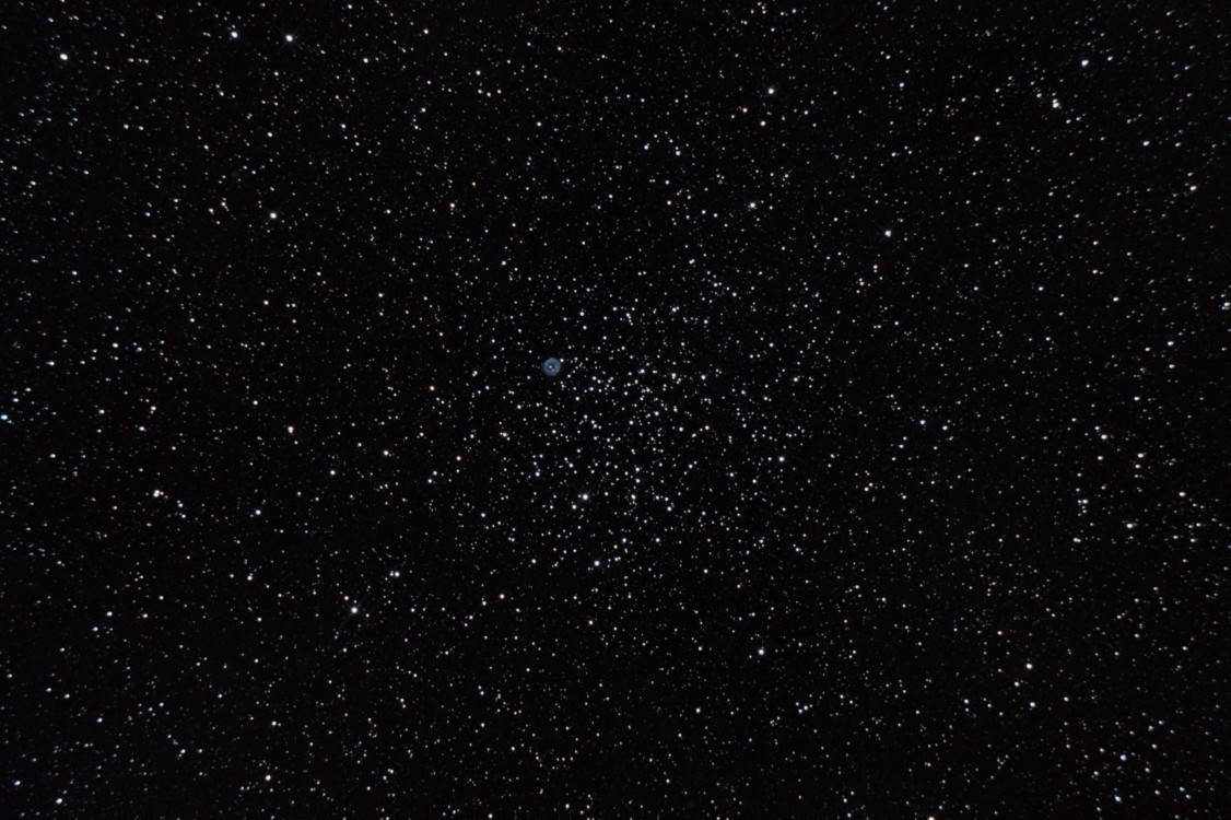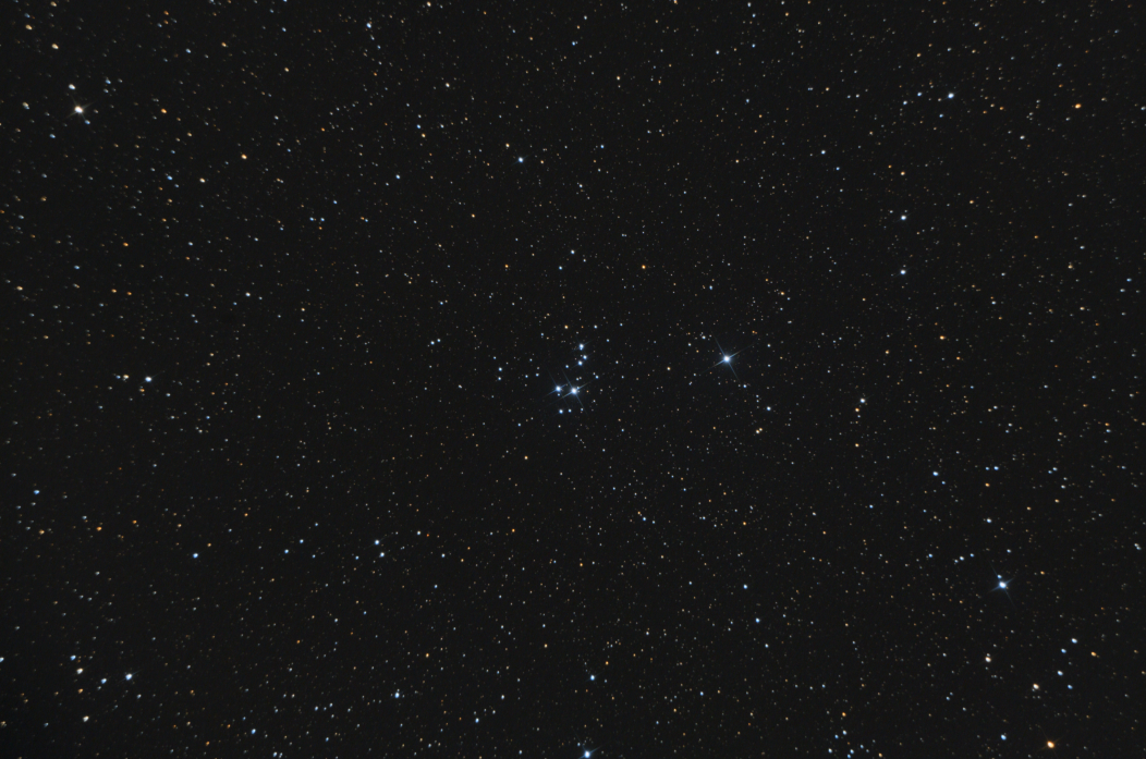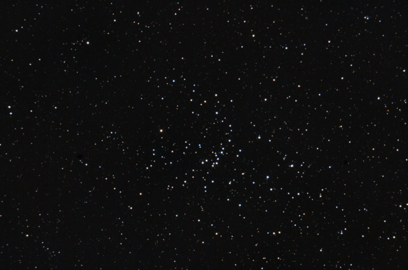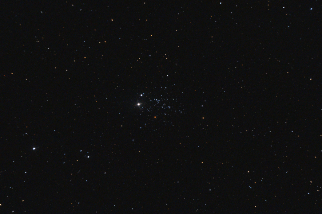 La vedette de la constellation, cet amas ouvert est même visible à l'oeil nu comme un petit rond flou juste au sud de Sirius. L'amas est étendu, plutôt riche, composé d'étoiles brillantes. Parmi celles-ci, noter deux étoiles doubles ainsi qu'une étoile white presque au centre.