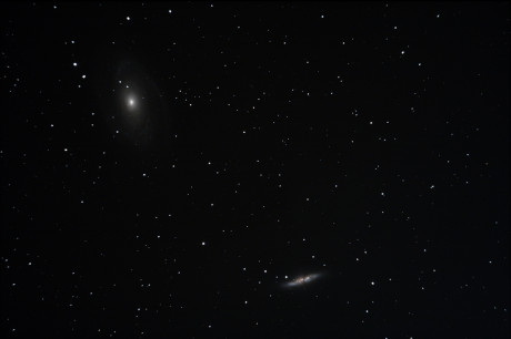 Galaxie principale d'un groupe de galaxies, le plus proche du Groupe Local après le groupe du Sculpteur (voir NGC253). M81 et M82 sont visibles dans le même champ à faible grossissement et forment un des couples de galaxies les plus célèbres du ciel. M81 est plus étendue que sa voisine et allongée (moins que M82). Deux étoiles doubles sont visibles juste au sud de la galaxie.