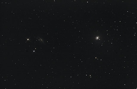 Couple de galaxies dans la chaîne de Markarian, juste à l'est des Yeux (NGC4435-38). La plus brillante est NGC4461, qui montre un noyau presque stellaire entouré d'un disque faible allongé dans la direction nord-sud. NGC4458 est nettement plus faible, ronde et sans détails.