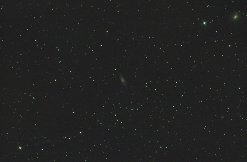 La plus grande galaxie du groupe M65-66, mais vue par la tranche et de faible brillance de surface, donc difficile sous un ciel médiocre. Sa forme évoque celle de NGC4565 et son allongement est impressionnant, mais seule la vision décalée permet de voir toute l'étendue de la galaxie. Si le ciel est très bon, la bande d'absorption se devine.