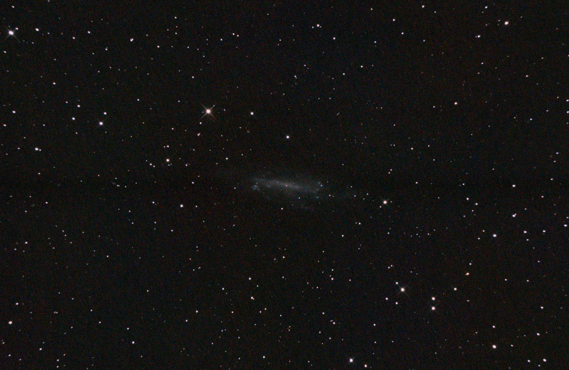 Galaxie vue par la tranche, très longue, mais à très faible brillance de surface. C'est une galaxie relativement proche, située juste à l'extérieur du Groupe Local dont elle fait peut-être partie. Elle nécessite un ciel noir. Je n'ai vu que la partie centrale, très faible et allongée.