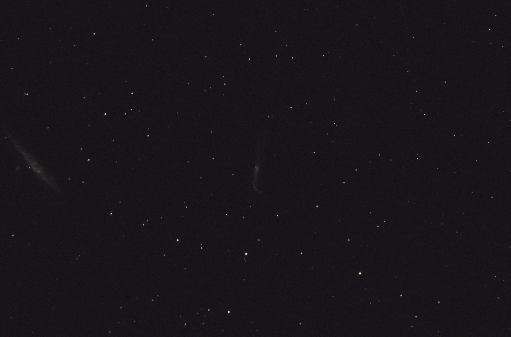 Galaxie voisine de NGC3169, située à 8' est. Au télescope de 200 m, on ne voit que son bulbe, rond, et une condensation centrale plus brillante. Son disque, beaucoup plus faible, s'étend loin vers l'est et l'ouest de la galaxie mais n'a pas été vu. Pas plus que la petite galaxie satellite NGC3165 (magnitude 14.0).