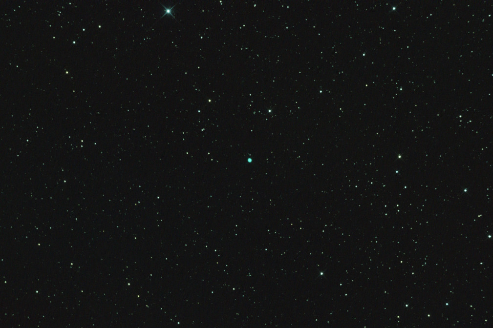 Petite nébuleuse planétaire de haute brillance de surface. Elle est facilement visible au chercheur, bien sûr stellaire. Un fort grossissement montre une sorte de patatoïde brillante un peu allongée, mais sans détails. Elle montre une teinte verdâtre. Je sais que l'étoile centrale est normalement visible dans un 200 mm, mais je ne l'ai pas vue...